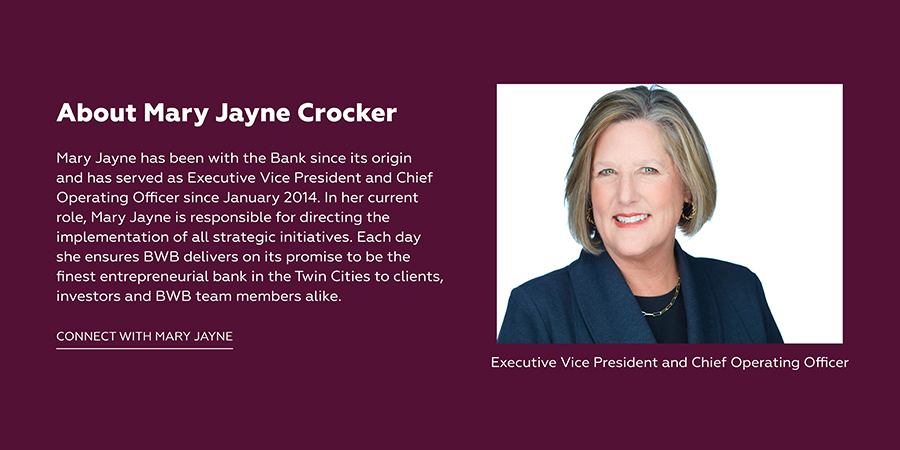 By Mary Jayne Crocker, Executive Vice President & Chief Operating Officer at Bridgewater Bank