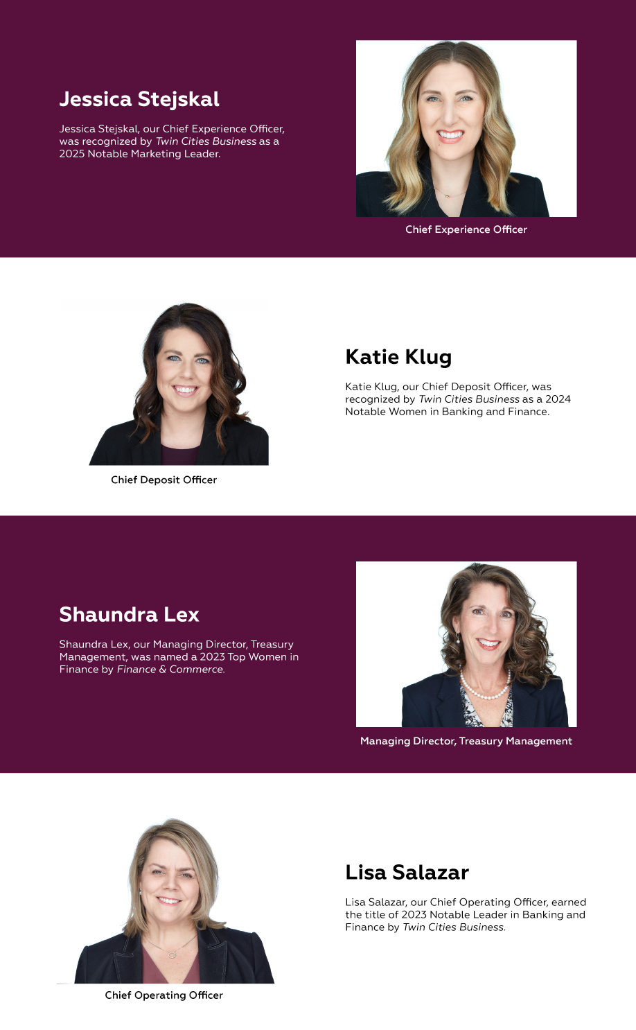 These women have been recognized for their leadership in the banking industry: